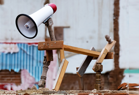 Megaphone – Microphone | Kanta Horio (Japón) La pieza consiste en dispositivos de recolección y difusión de sonido, y un sistema de mediación entre ellos que se basa en magnetismo y luces.