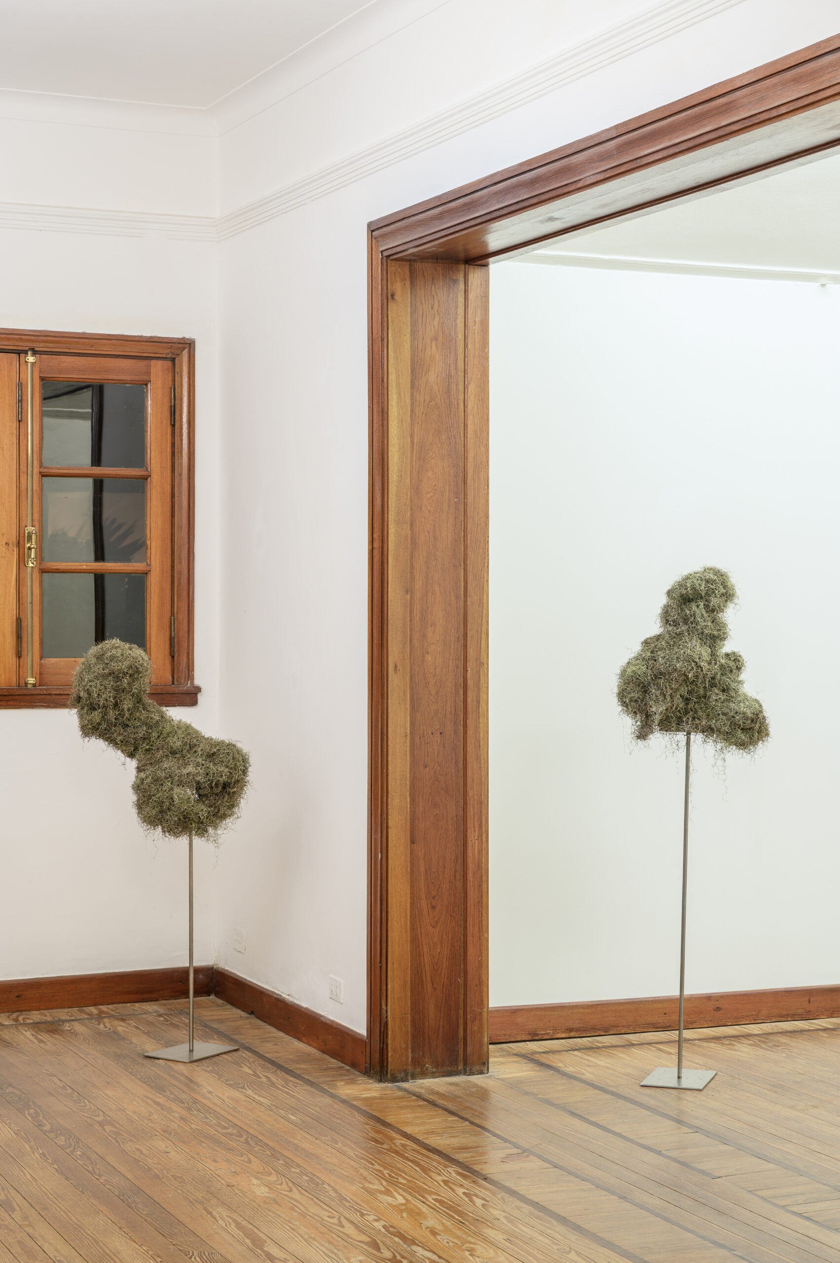 Para esta exposición, elaboró una serie de piezas a partir de un paseo por Mayu Sumaj (Río de Córdoba). Durante caminatas y derivas en auto, se reencuentra con una planta que trabaja a diario en su taller, lo que la impulsa a reinventar nuevos sentidos a un material ya incorporado en su rutina creativa.