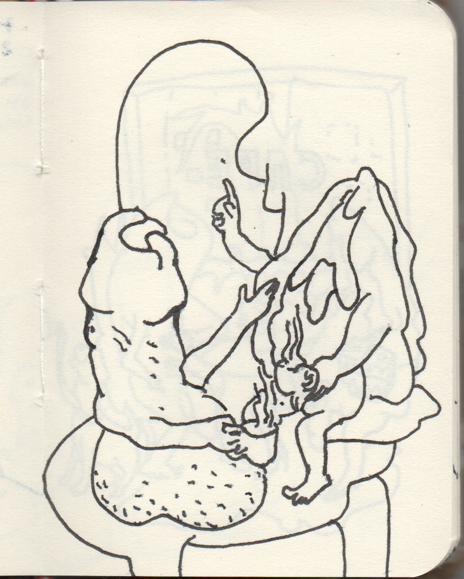 El sueño nunca dibujado es el siguiente. Muchos humanos van volando lentamente con cajas sobre las cabezas de todes los que diariamente transitan de acá para allá. Pero no son vistos, es un trabajo espiritual, necesario, que mantiene al mundo en funcionamiento, aunque nadie lo sabe. Cuando dejen de hacerlo, todes morirán. La muerte los sorprenderá jugando con un robot, siendo un turista, haciéndose una cirugía plástica, comiendo hamburguesa. Está claro: todos estamos relacionados, el equilibrio de lo consciente y lo inconsciente es fundamental.