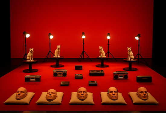 Una orquesta de voces, amplificada por antiguos radiograbadores, ensaya modos de supervivencia mientras un ejército de marionetas se pierde en el archipiélago de la vanidad.